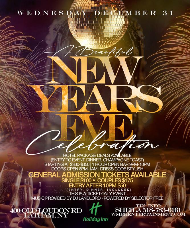 Starting at $300-$350 Includes ( Hotel Room, Entry to Ballroom, Buffet Dinner, 1 Hour Open Bar, Champagne Toast)